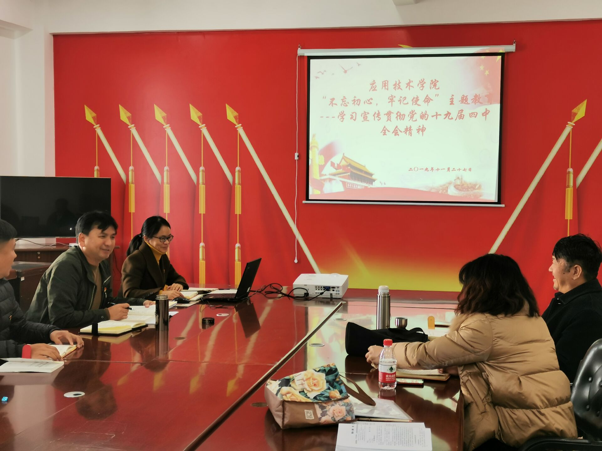 连日来,应用技术学院师生通过多种形式深入学习宣传党的十九届四中全会精神,进一步统一思想认识、明确目标方向、汇聚行动力量,迅速掀起了学习贯彻全会精神的热潮。