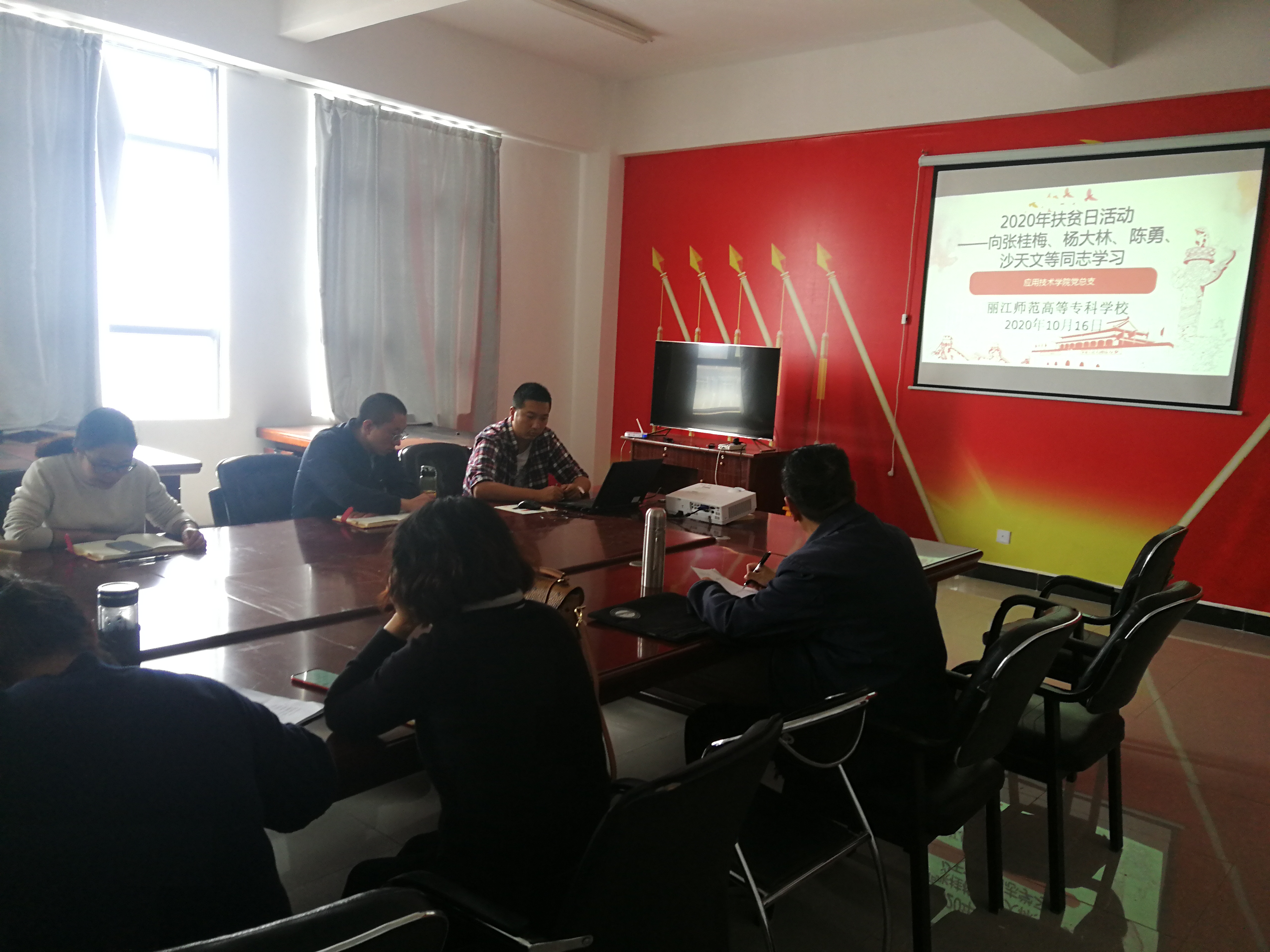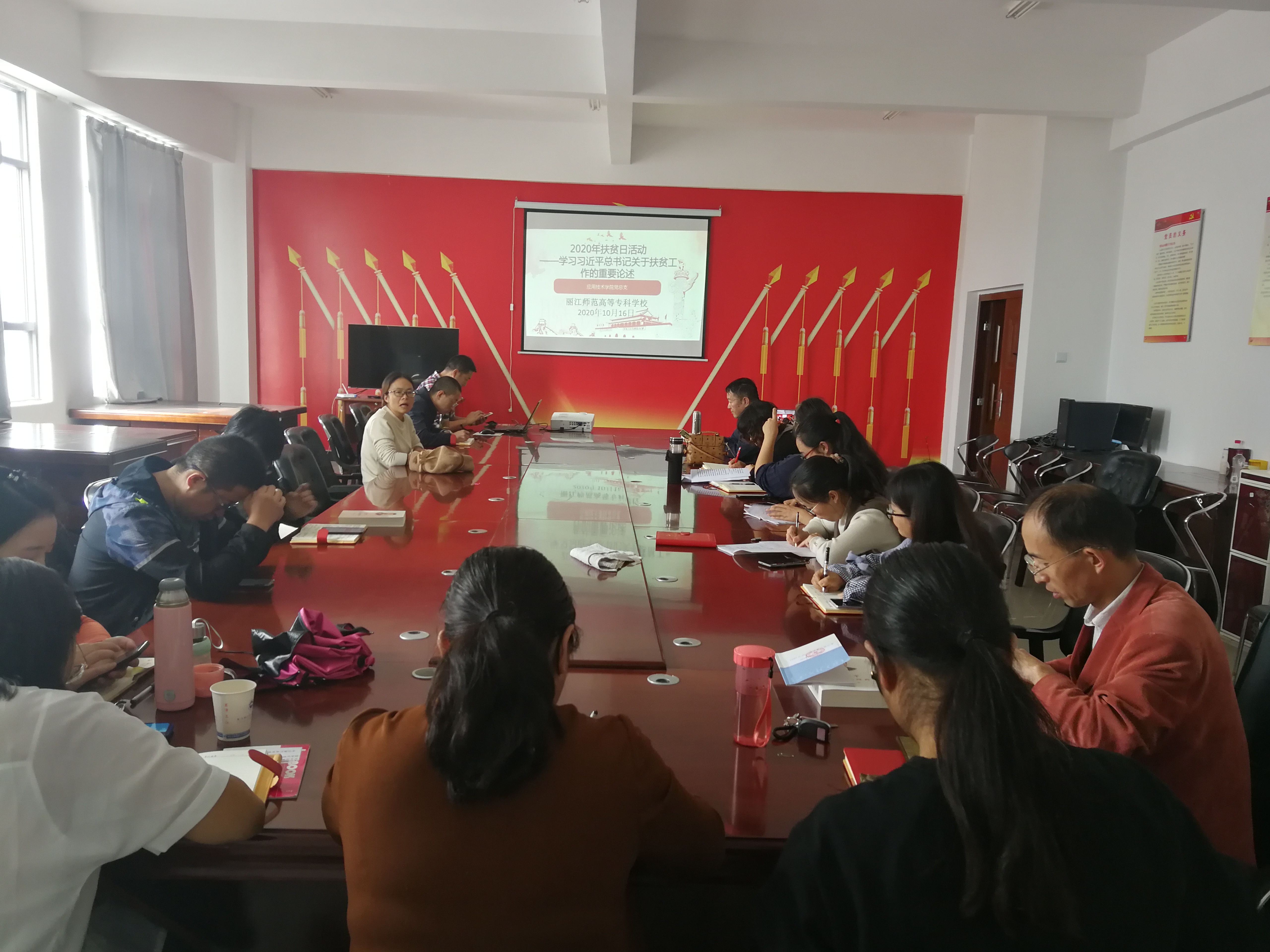 2020年10月17日是我国第7个扶贫日,也是第28个国际消除贫困日,根据学校党委宣传部的要求,应用技术学院党总支于2020年10月16日下午14:30在实训楼609组织所属党员同志开展了习近平总书记关于扶贫工作的重要论述等政治理论学习活动。