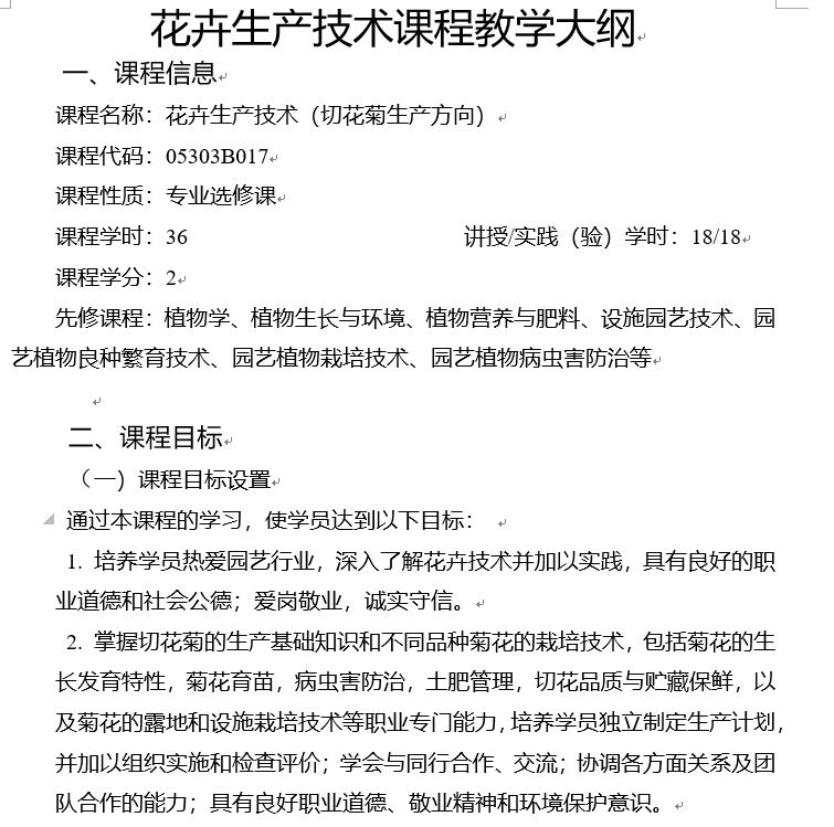 应用技术学院园艺技术专业继2021年10月9日与虹之华园艺有限公司签订实习实训基地协议之后,进一步进行了新型学徒制人才培养模式的探索,与虹之华园艺有限公司共同进行了《花卉栽培技术——切花菊生产》的课程建设,制定了课程大纲和教案。