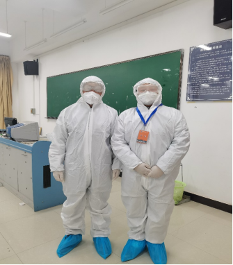 2022年4月9日—10日,云南省普通高校专升本招生考试在学校进行,由于疫情防控形势的严峻性,寇灿和李寿斌老师在收到学校疫情防控领导小组的紧急通知后,第一时间加入到学院带星号同学的单独监考,他俩全程身穿防护服,克服重重困难工作在抗疫前线,为大家做出了表率。
