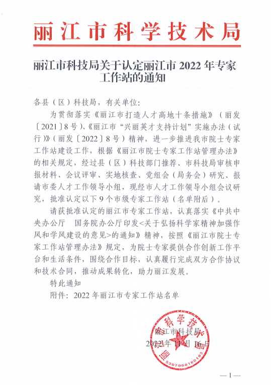 为贯彻落实《丽江市打造人才高地十条措施》、《丽江市“兴丽英才支持计划”实施办法》精神,丽江市科技局根据《丽江市院士专家工作站管理办法》的相关规定,应用技术学院积极申报高连明专家工作站,经过科技部门推荐、市科技局审核申报材料、会议评审、实地核查、党组会(局务会)研究、并报请市委人才工作领导小组会议研究批准认定了9个市级专家工作站。近日发布的《丽江市科学技术局关于认定丽江市2022年专家工作站的通知》,我校申报的高连明专家工作站成功获得认定。
