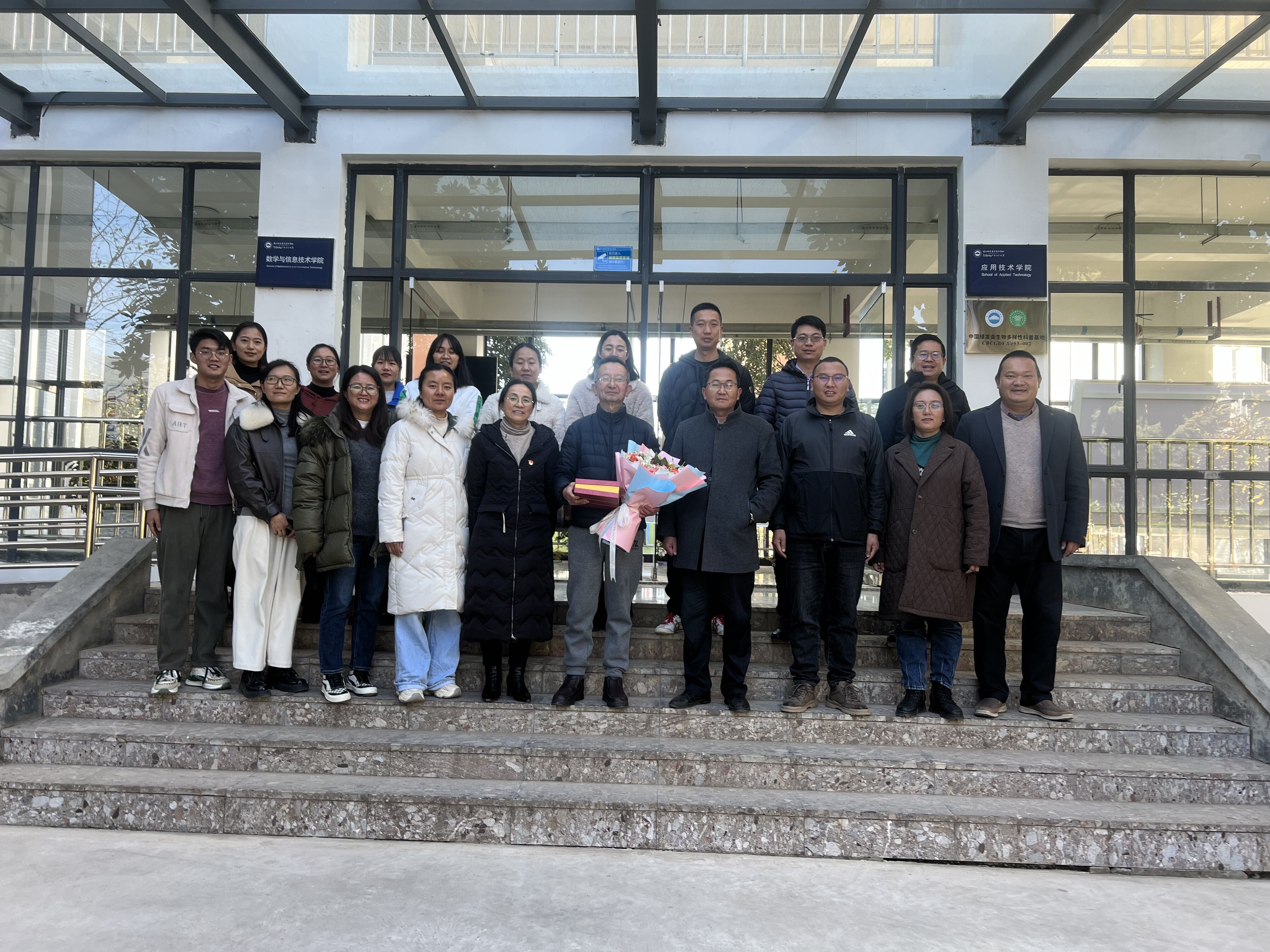 岁月承载着历史的步伐,天地积淀着文明的精华,又是一载流光溢彩,又是一季桃李芬芳。冬至象征着团圆,在这个特殊的日子里,我们共同欢送学院冯春霖老师光荣退休,学院全体教师为冯老师举办了光荣退休欢送会。欢送会上由学生代表为冯老师献花献礼,感谢冯老师38年以来为边疆教育事业的辛勤付出。
