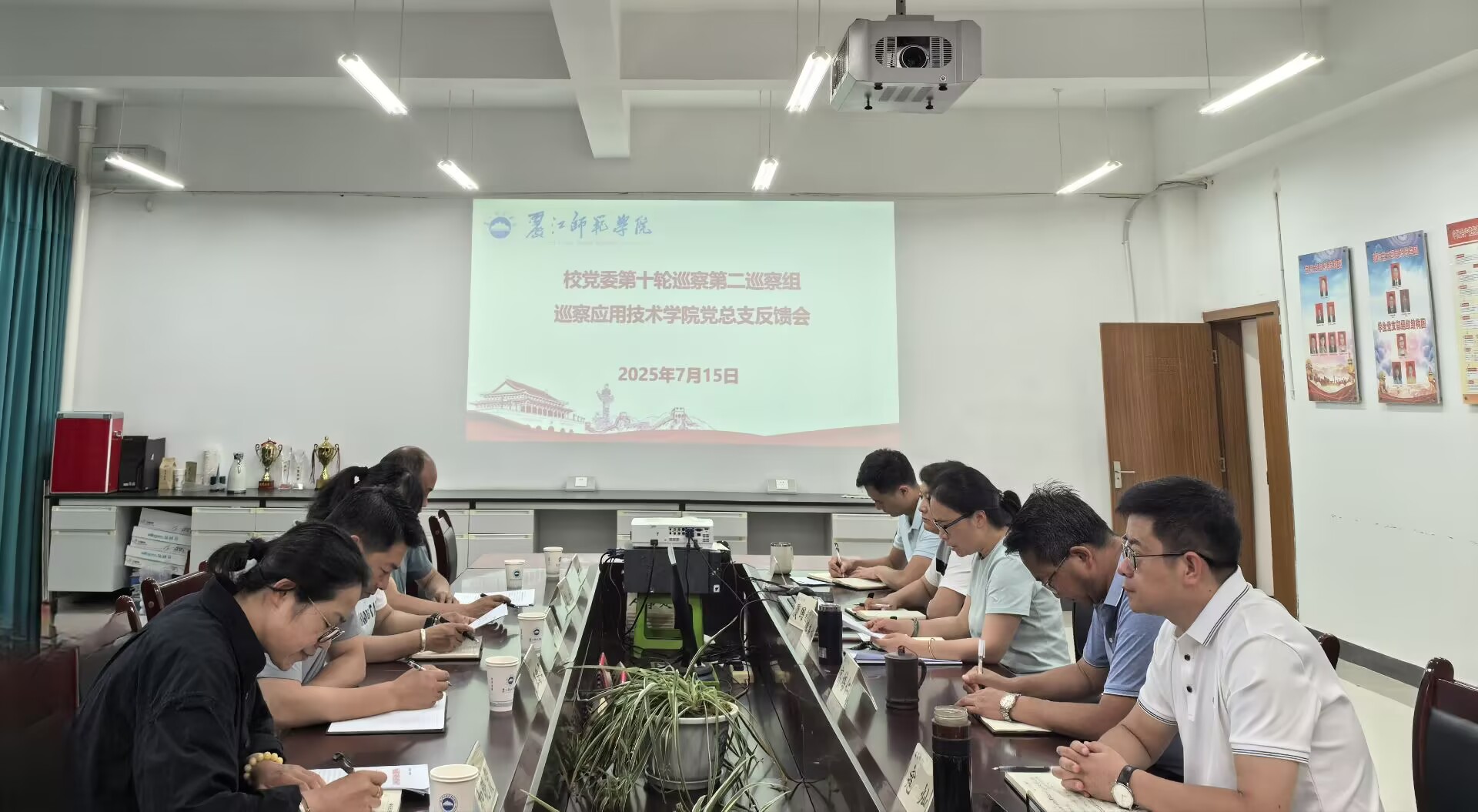 根据校党委巡察工作领导小组的部署,2025年7月15日,校党委第十轮巡察第二巡察组向应用技术学院党总支反馈巡察情况。校党委巡察工作领导小组成员和新梅传达了学校党委书记毕天云同志主持召开学校党委常委会听取校党委第十轮巡察情况汇报时的讲话精神,对抓好巡察整改工作提出要求。巡察组组长沈欢向应用技术学院党总支反馈了巡察情况,李燕梅同志主持反馈会议并作表态讲话。