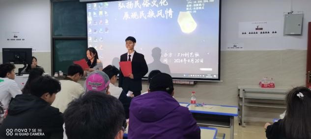 为弘扬民俗文化,使同学们认识和了解各地民俗文化,增强对乡土情结的认同感,F.H创艺社于2024年4月20日19:00—21:00举办了“弘扬民俗文化,展现民族风情”演讲比赛活动。