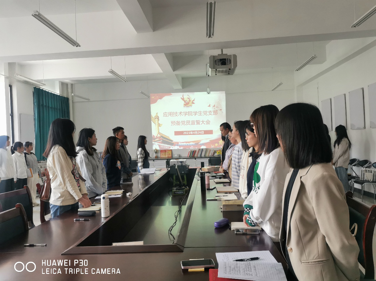 为进一步激发党员的荣誉感、责任感和使命感,激励新党员提高党员意识、加强党性教育,2023年4月26日应用技术学院党总支学生党支部在理工楼北305进行预备党员入党宣誓仪式,学生党支部全体党员、预备党员、入党积极分子参加了宣誓仪式。