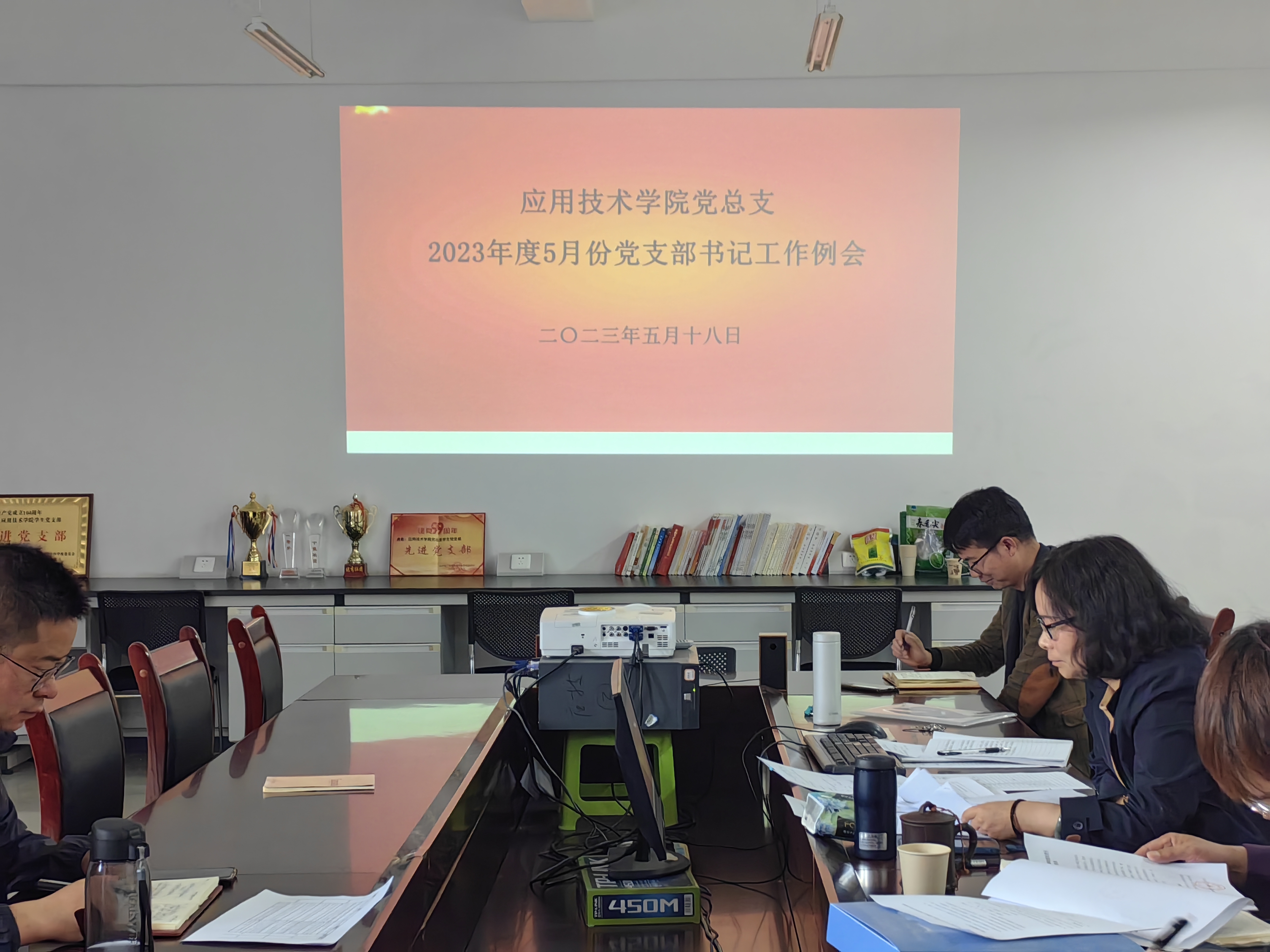 2023年5月18日下午,应用技术学院党总支召开了2023年5月份党支部书记工作例会。会议由学院党总支书记李燕梅主持,党总支副书记、纪检委员、专职组织员、支部书记参加会议。