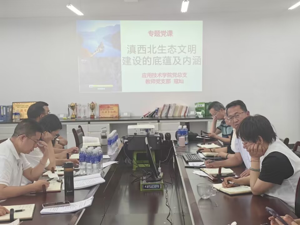 教师党支部书记寇灿结合专业实际作了题为《滇西北生态文明建设的底蕴及内涵》的党课,通过讲解让与会人员对滇西北的生物文明有了全新的认识,也对党建与业务的有效融合提供了新思路。