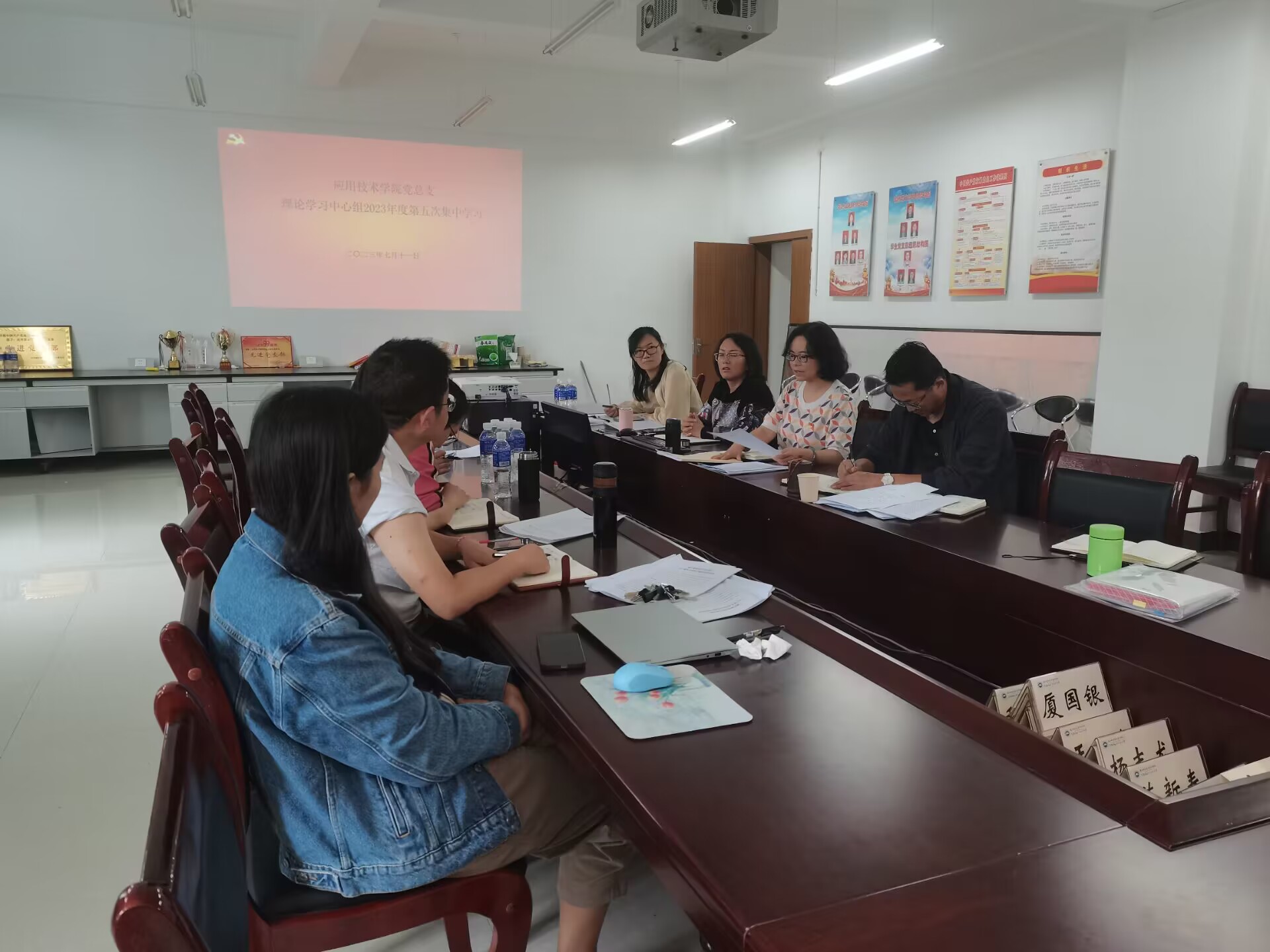 7月11日中午,应用技术学院党总支开展了理论学习中心组2023年度第五次集中学习研讨。会议由党总支书记李燕梅主持,党总支支委、支部书记、三办主任参加会议。