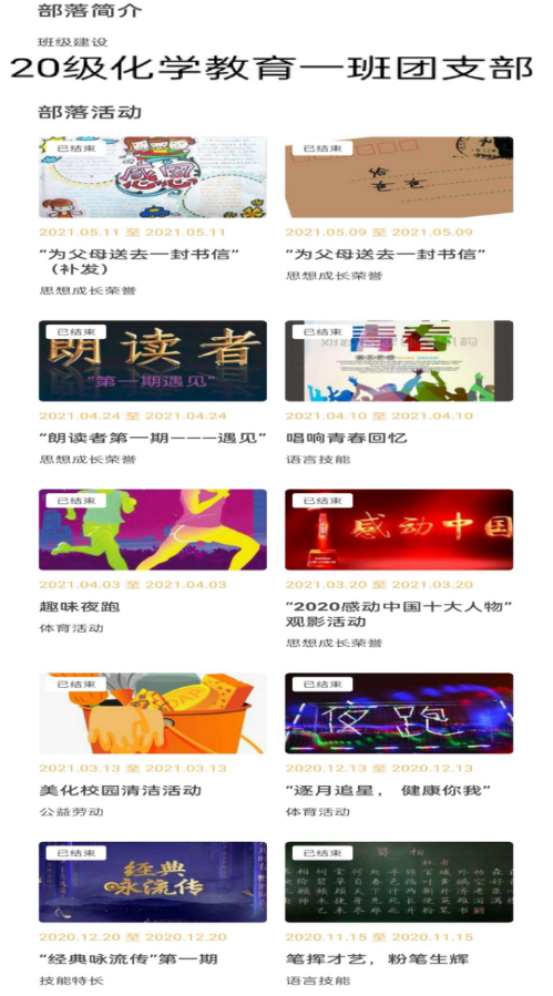 应用技术学院2020级化学教育一班团支部是由50位同学组成的一个充满活力、积极向上、团结友爱的班集体,而共产主义青年团团支部便是这个组织的核心,将39位共青团员紧密地团结在一起。在过去的一年中,2020级化学教育一班团支部在学院领导的关心支持下,在学院团委的组织和领导下,在整个支部所有成员的共同努力下,不断加强团支部的自身建设,无论是思想政治修养、班风学风建设,还是在校园文化体育活动方面,都取得了较好的成绩。