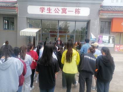 走访完之后,高培仁院长一行人把同学们集中在一起再一次的嘱托和感谢。高培仁院长告诉大家,希望在最后的日子同学们继续发扬学院吃苦耐劳的精神,积极配合民运会方认真排练,相信大家在这次活动中收获到了许多,并交代了这期间的疫情防控注意事项。
