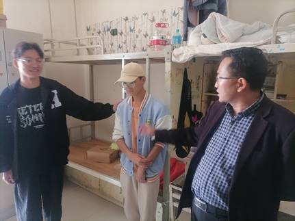 在中秋节来临之际,恰缝同学们由集中宿舍搬回自己原宿舍的第二天,也是同学们即将出校到民运会开闭幕式排练点进行最后紧张排练的关键时期。应用技术学院院长高培仁、党总支副书记厦国银、学工办主任杨嫦丽和工会组长杨志龙一行走访学生宿舍了解其住宿、生活和学习等各方面情况。
